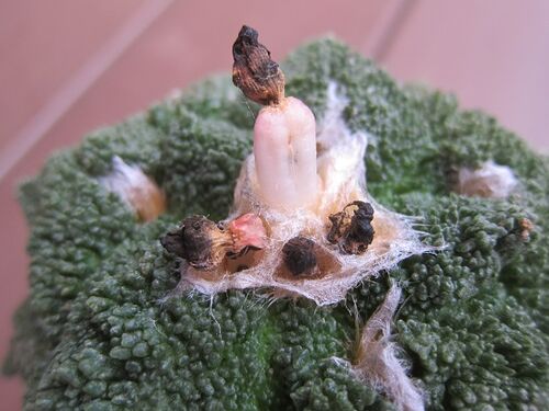 出てきました~ ゴジラの サヤ イボが チリチリ タイプです。 アップで見ると 4つの 花ガラと 2つのサヤが あります。 サヤの1つは すでに しぼんでいます。 すぐに タネを 回収 このところ 花籠や 菊水の 微小なタネを まいていたので ゴジラのタネが 巨…