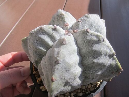 写真は ストロンギロゴナム 実生株 きゅっと ひきしまって 筋骨隆々です。 下の写真は 亀甲恩塚鸞鳳玉 実生株 サボテン フレームの かたすみに置いていたら・・・ だらしなく タテに のびてきた。 ちょっと しぼります。