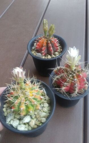 写真は 翠晃冠錦 つぎつぎと 花ひらいています。 下の写真は エスメラルダーナ 実生株 花の 見ごろは すぎた ようすです 翠晃冠錦とは 対照的に 地味です。