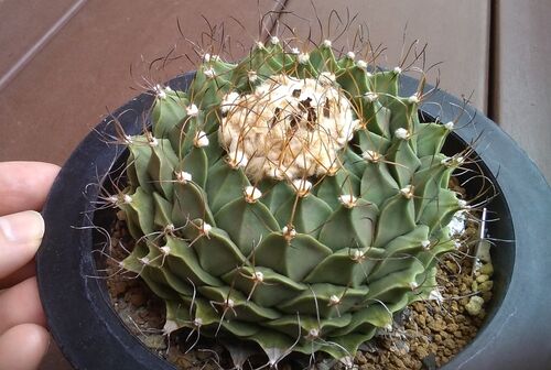 先月 庭で グロテスクで リッパな ムカデを 5匹も やっつけた。 家族が ムカデ被害に あうまえに 対策が 必要です。 写真は 帝冠 実生株 花が 合えば 交配しています。 ハスの花のような サボテンです。
