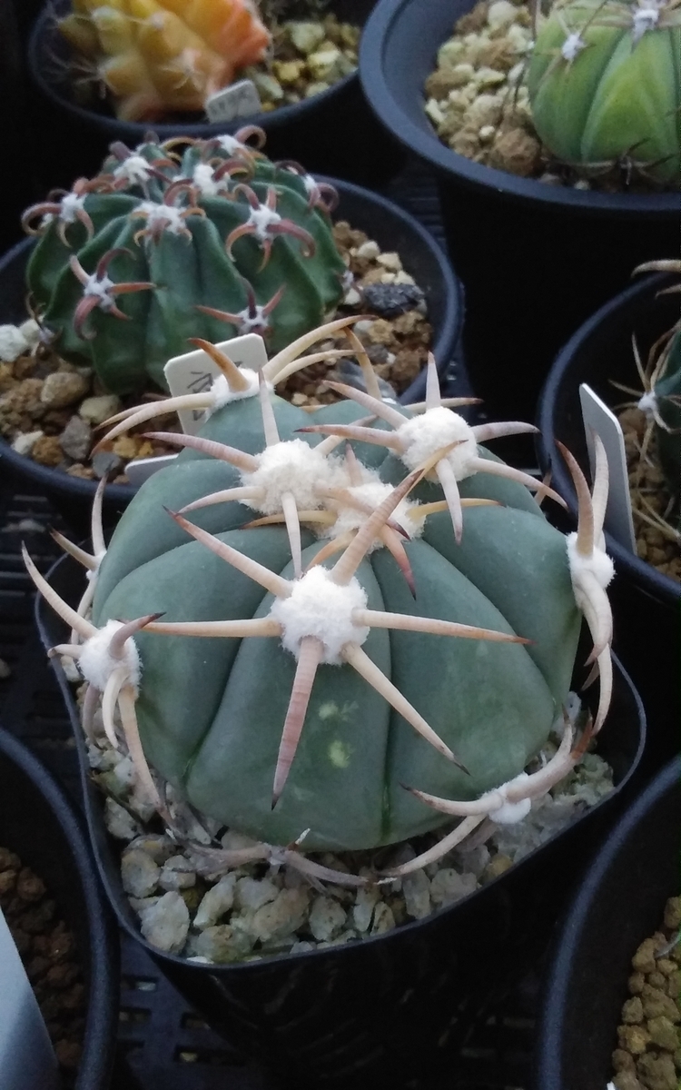 2023-10-25 太平丸 Echinocactus エキノカクタス 来週は 11月 月日が あっという間に 過ぎていく。 仕事に 熱中するのは もったいない! サボテンを じっくり ゆっくり 愛でる時間は 大切に したいものです。 写真は 太平丸 実生株 よく 見ると・・・ 白い綿毛(アレオーレ)も きれいです。