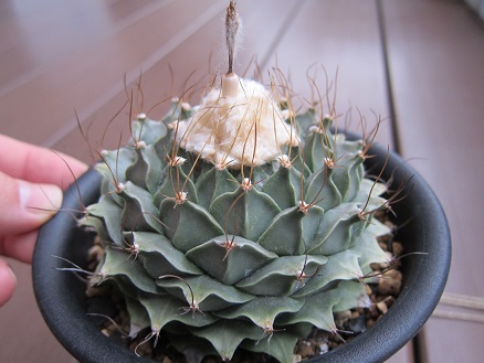 2019-05-14 帝冠 ひょっこり Obregonia オブレゴニア 帝冠 アタマから なにやら ヒョロヒョロと 伸びてきた! よ~く見ると・・・ 花ガラの つけねに白いサヤが 顔をだしている 帝冠 実生株 いつ 交配したのか!? 思い出せないので 記録ノートを 見返してみると・・・ 「2018年 9月2日 交配」と 書いてあった。 交配の相方にした帝冠は どうなっているのか!? 注意して みてみると・・・ やっぱり ひょっこり サヤが 出ていました。 これから タネまきしてみます!